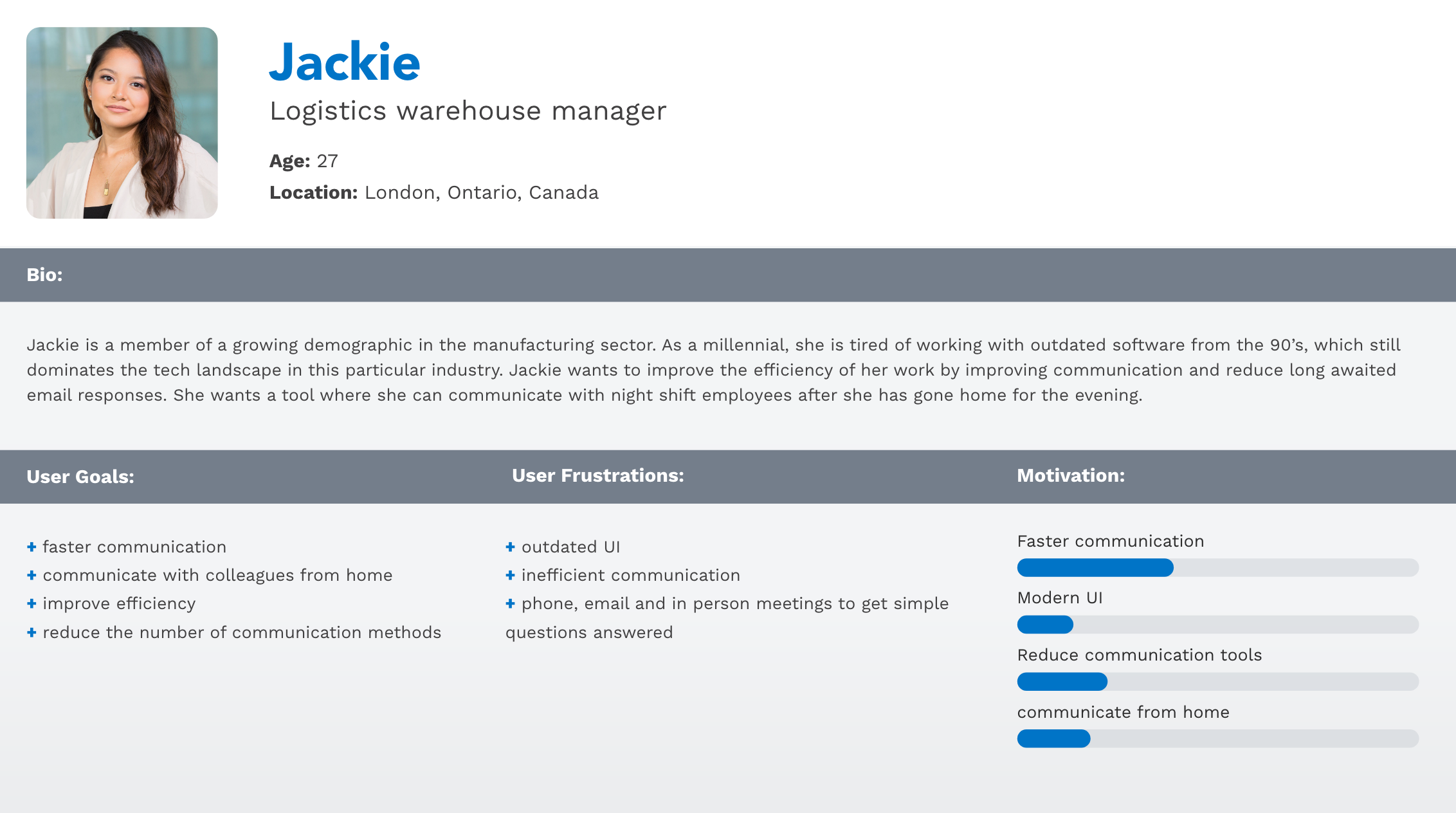 Based on our constant communication with the client and hearing the problem mentioned over and over, we decided to move forward with creating a persona to synthesize our user’s pain points and help us empathize with them.