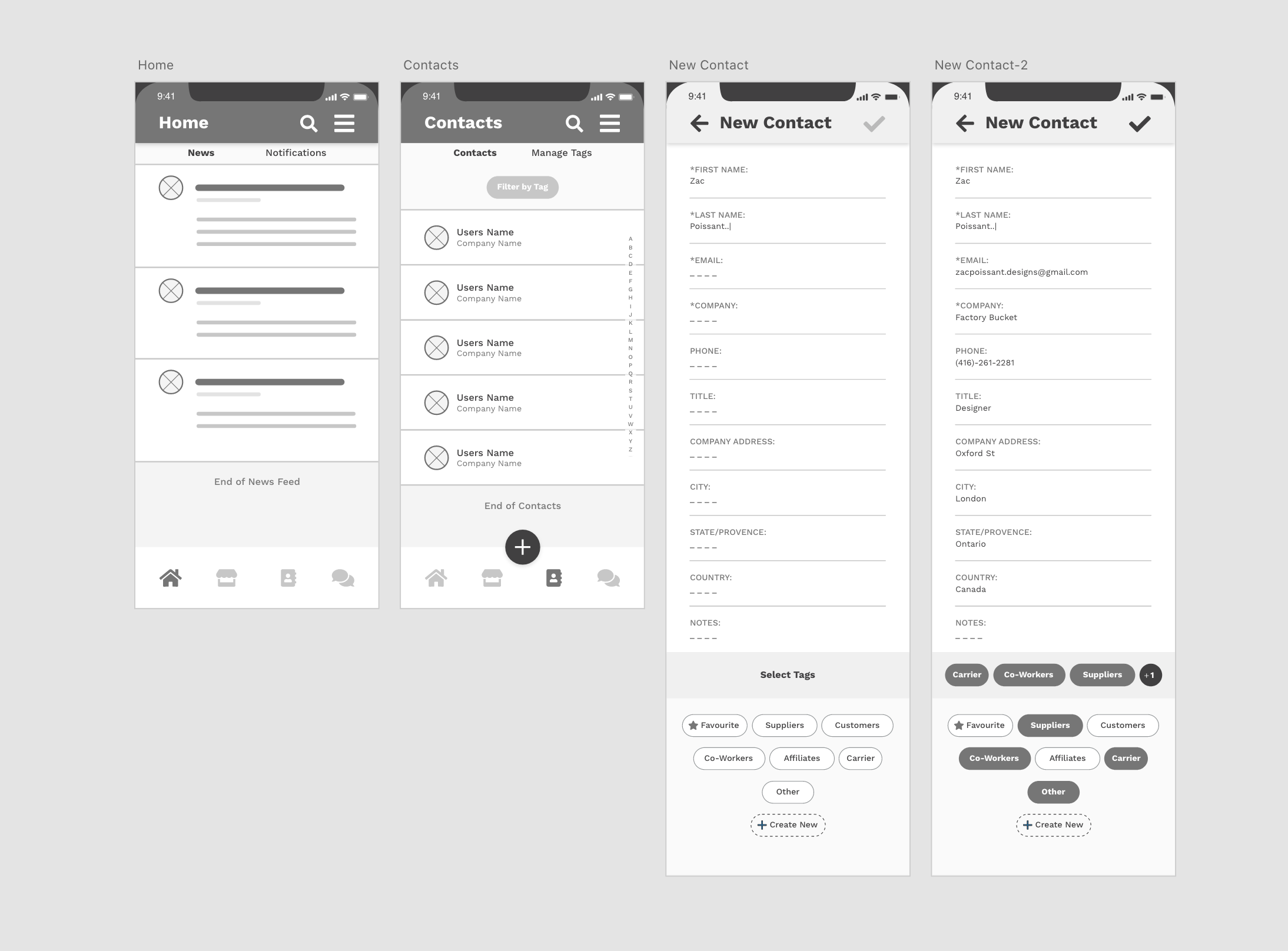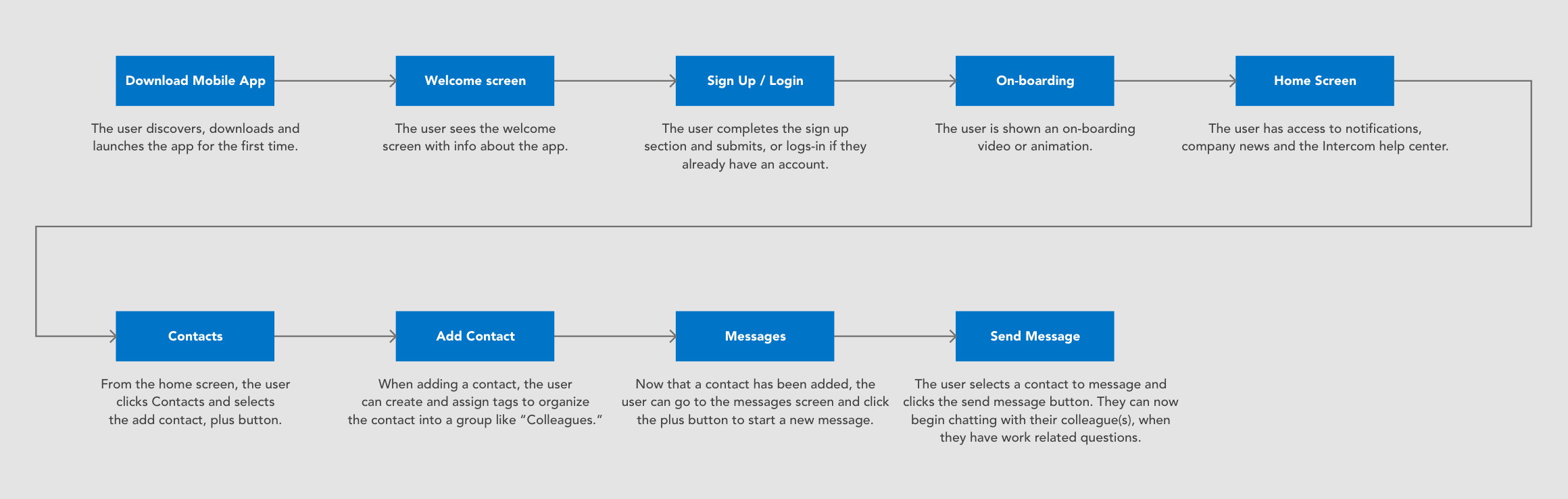 The task flow below demonstrates how a user would go from discovering the app, to adding their first contact and
