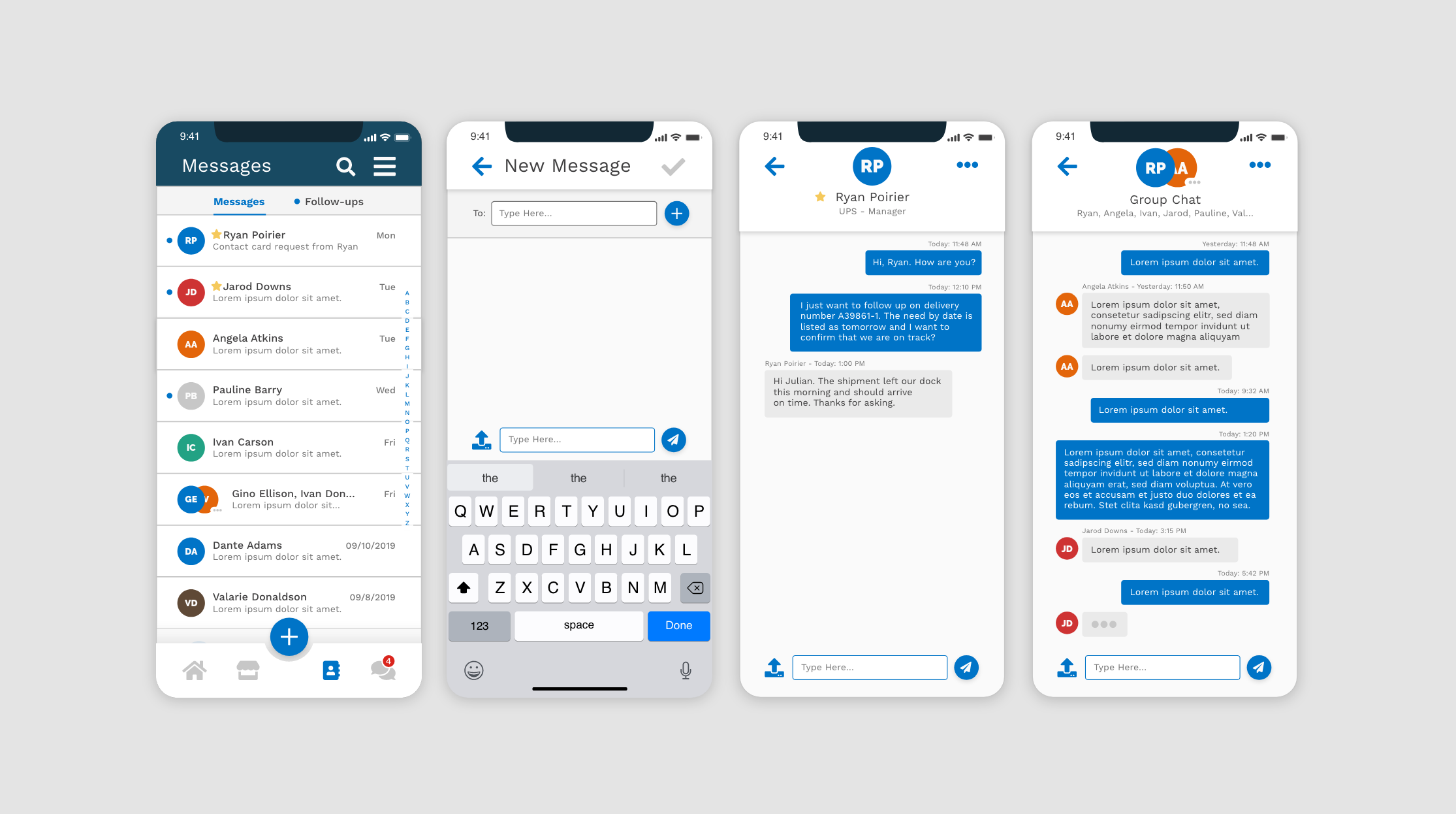I was tasked with conceptualizing a mobile messenger feature that would provide users with a communication tool within our enterprise software. Our goal was to create a network effect that could increase our team's sales opportunities within a growing user-base. We decided to explore a mobile-first design with the intention of building a web version after. Unfortunately, this project was sidelined in favour of other opportunities.