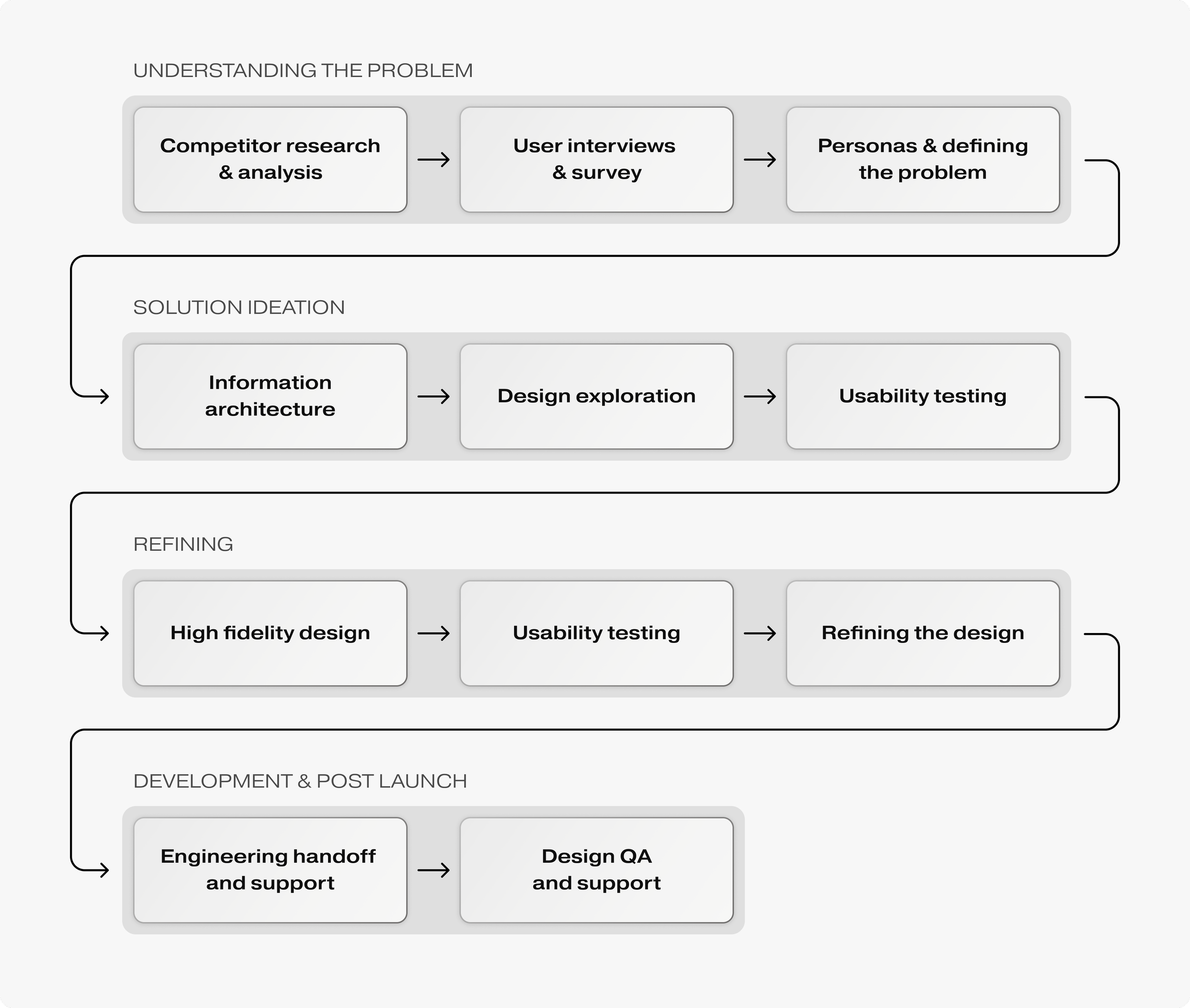 Core responsibilities: User research, competitor research & analysis, UI design, prototyping, usability testing, and design QA.