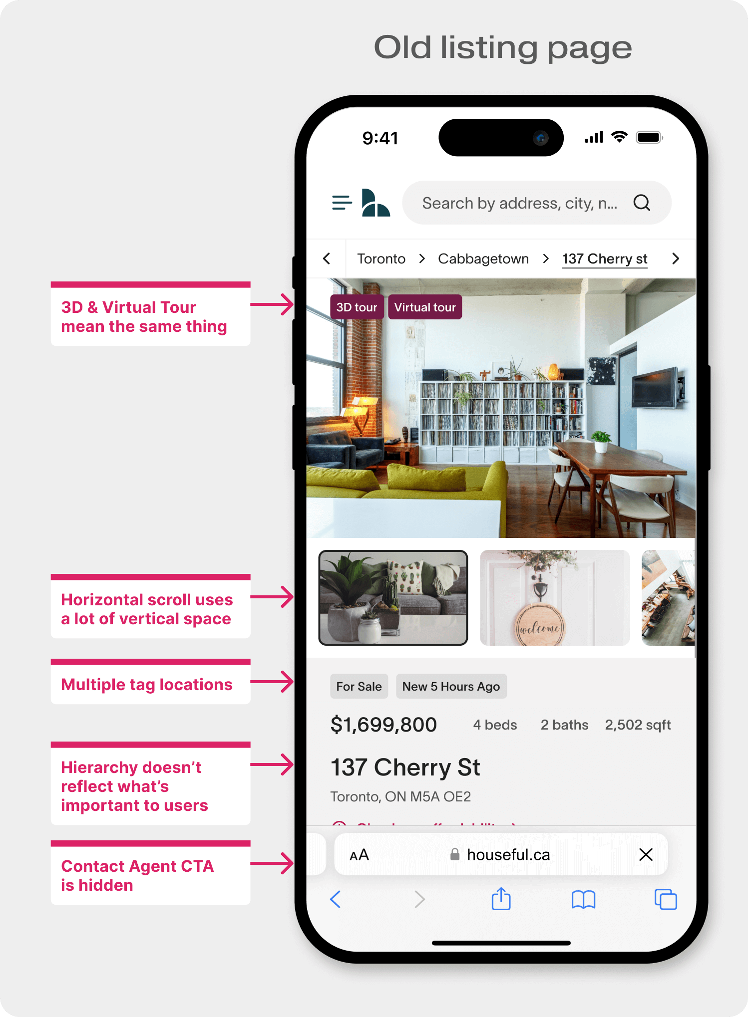 Redesigning Houseful’s real estate listing pages to improve the design and address UX issues.